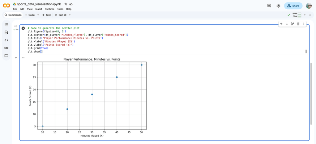 Knowledge and Skills Developed: Using LaTeX within a Text Cell for mathematical notation. Defining a simple data structure (pandas DataFrame) in a Code Cell. Generating a basic visualization using a Python library (matplotlib) as code output.